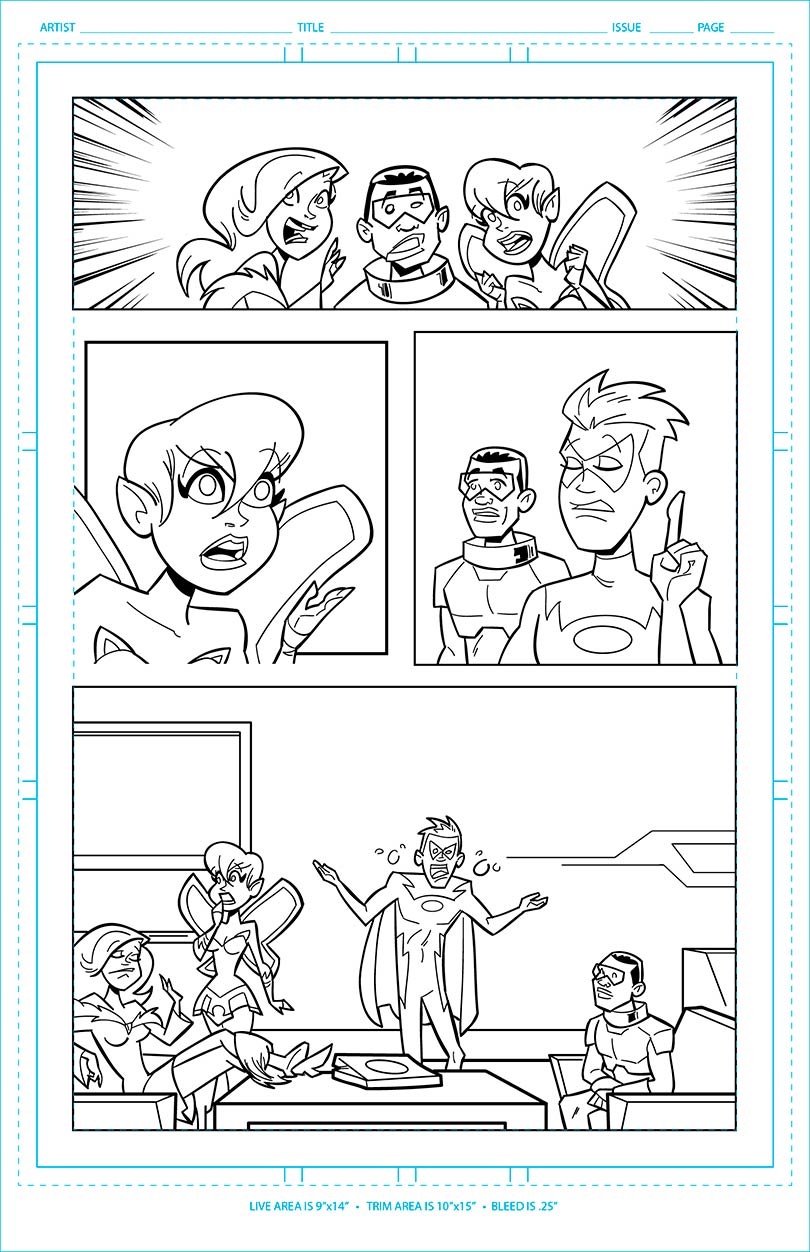 Interior page for an all-ages comic book project.